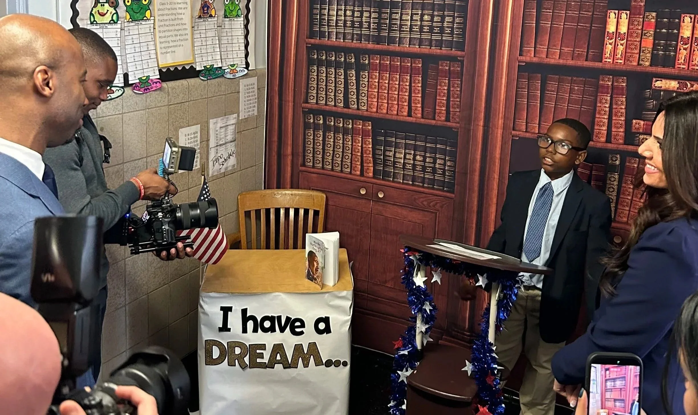 One memorable aspect of the visit was PS 191Q’s Living Wax Museum, which brought student learning to life with vibrant creativity and inspiration. A student dressed as Barack Obama welcomed Chancellor Samuels and shared words of encouragement tied to leadership, literacy, and the power of student voice. Just before the classroom visits began, the Chancellor met Albert Einstein and Martin Luther King Jr., both portrayed thoughtfully and engagingly by students. Then, just prior to his departure, he was greeted by Elvis Presley, creating a memorable closing moment that captured the creativity, confidence, and joy of PS 191Q students. Together, these moments beautifully showcased how the school connects literacy, history, performance, and student leadership to leave a meaningful and lasting impression.