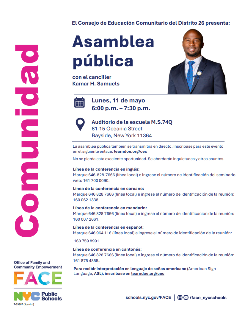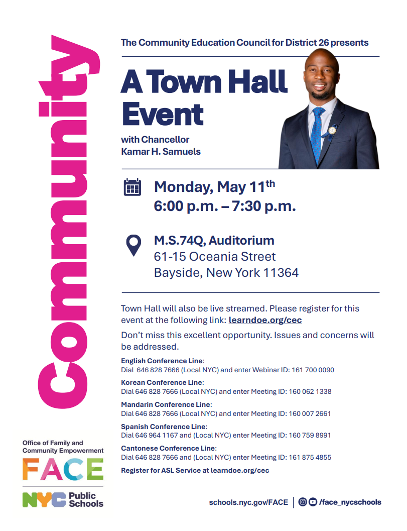 COMMUNITY RESOURCES Community District Education Council 26 (CEC26) Visit the CEC26 website for more information. Visit the CEC26 website for more information.